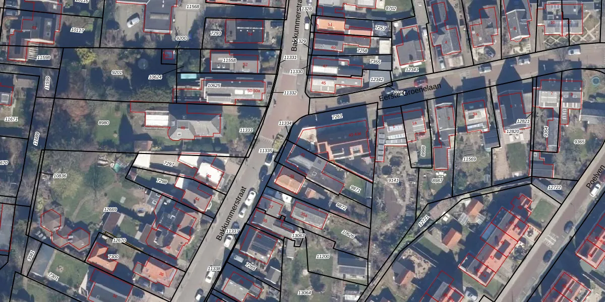 Gebruik de zoekbalk of klik op een perceel voor informatie over de adressen binnen dit perceel.