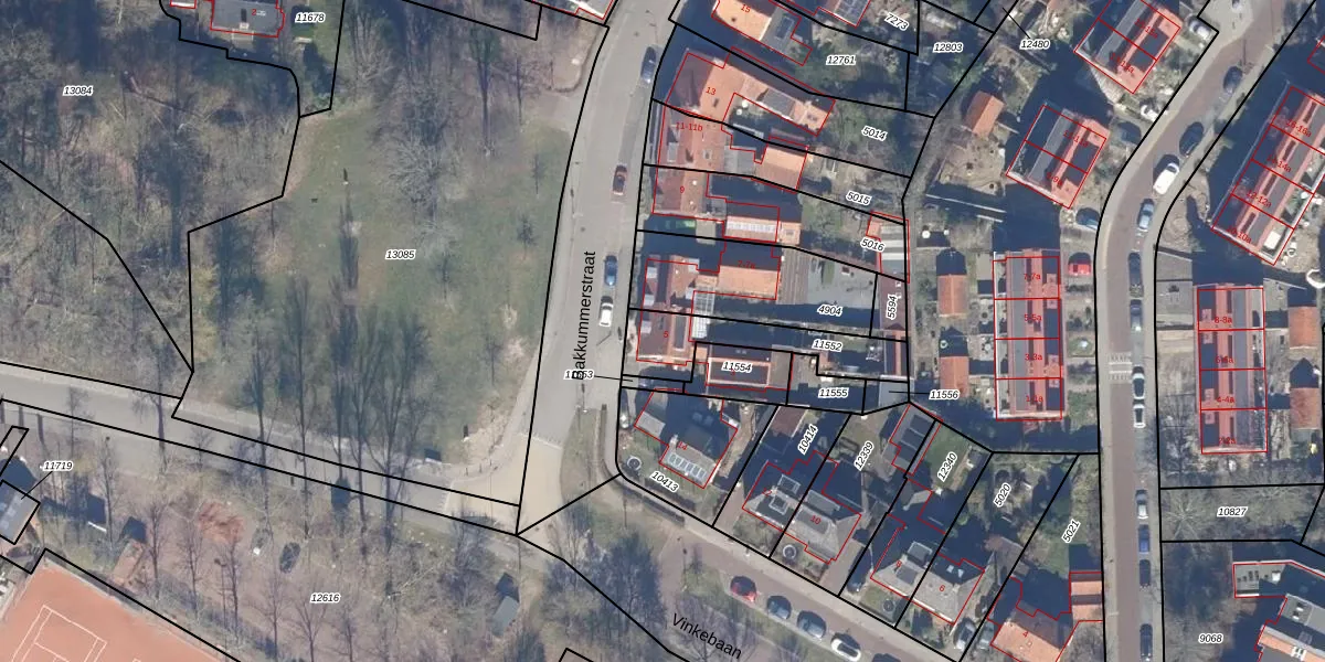 Gebruik de zoekbalk of klik op een perceel voor informatie over de adressen binnen dit perceel.