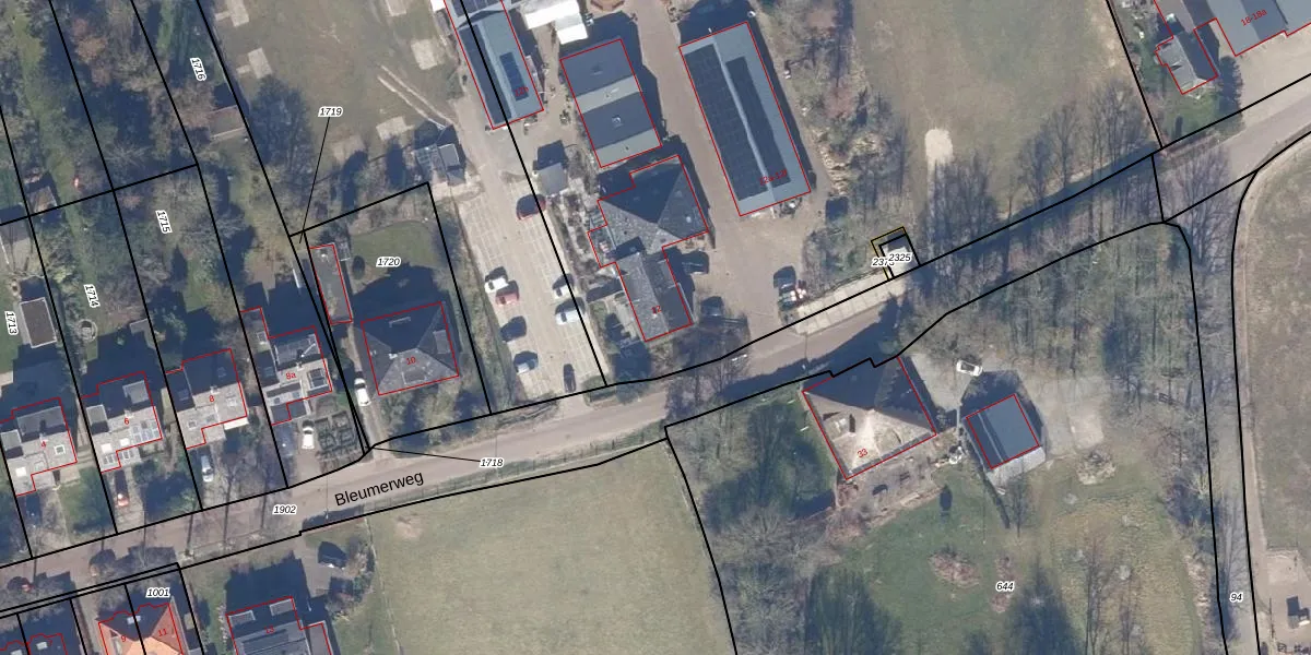 Het perceel waarop Bleumerweg 12 staat heeft een oppervlakte van 1,9 ha. Dit is een zeer groot perceel. De perceeloppervlakte wordt geregistreerd door het Kadaster. Gedetailleerde informatie over de maten van dit perceel kunt u vinden in het rapport Kadastrale kaart met maatvoering van Bleumerweg 12.
