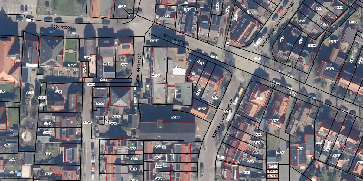 Het perceel waarop Breedeweg 1-f staat heeft een oppervlakte van 445 m². Dit is een groot perceel. De perceeloppervlakte wordt geregistreerd door het Kadaster. Gedetailleerde informatie over de maten van dit perceel kunt u vinden in het rapport Kadastrale kaart met maatvoering van Breedeweg 1-f.