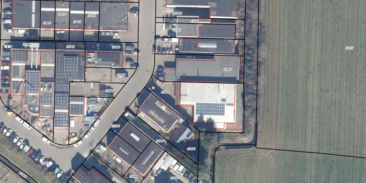 Castricummer Werf 16 is gelegen op kadastraal perceel CTC00B10994. Deze kadastrale aanduiding is uniek en wordt gebruikt door het Kadaster om eigendomsrechten en andere zakelijke rechten vast te leggen. Het perceel maakt onderdeel uit van de kadastrale gemeente Castricum.