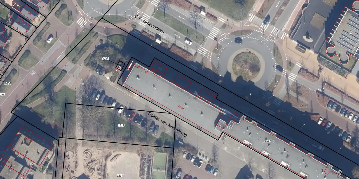 Het perceel waarop C.F. Smeetslaan 16 staat heeft een oppervlakte van 2970 m². Dit is een zeer groot perceel. De perceeloppervlakte wordt geregistreerd door het Kadaster. Gedetailleerde informatie over de maten van dit perceel kunt u vinden in het rapport Kadastrale kaart met maatvoering van C.F. Smeetslaan 16.