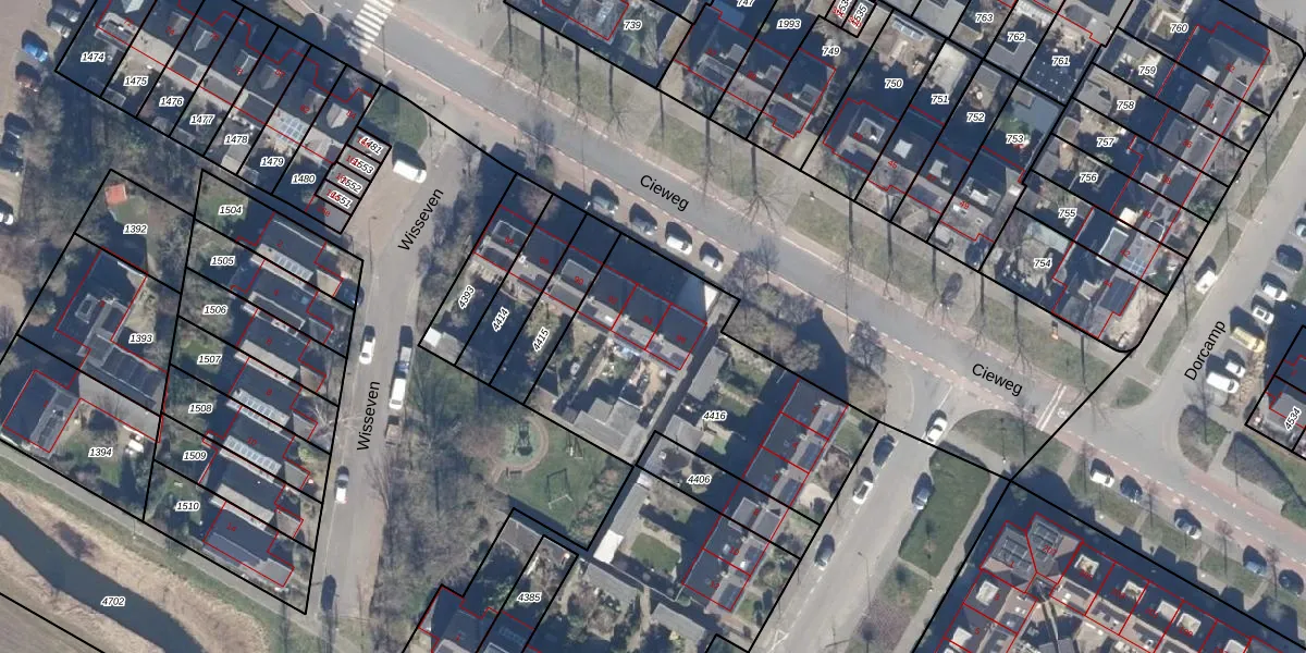Het perceel waarop Cieweg 94 staat heeft een oppervlakte van 2617 m². Dit is een zeer groot perceel. De perceeloppervlakte wordt geregistreerd door het Kadaster. Gedetailleerde informatie over de maten van dit perceel kunt u vinden in het rapport Kadastrale kaart met maatvoering van Cieweg 94.