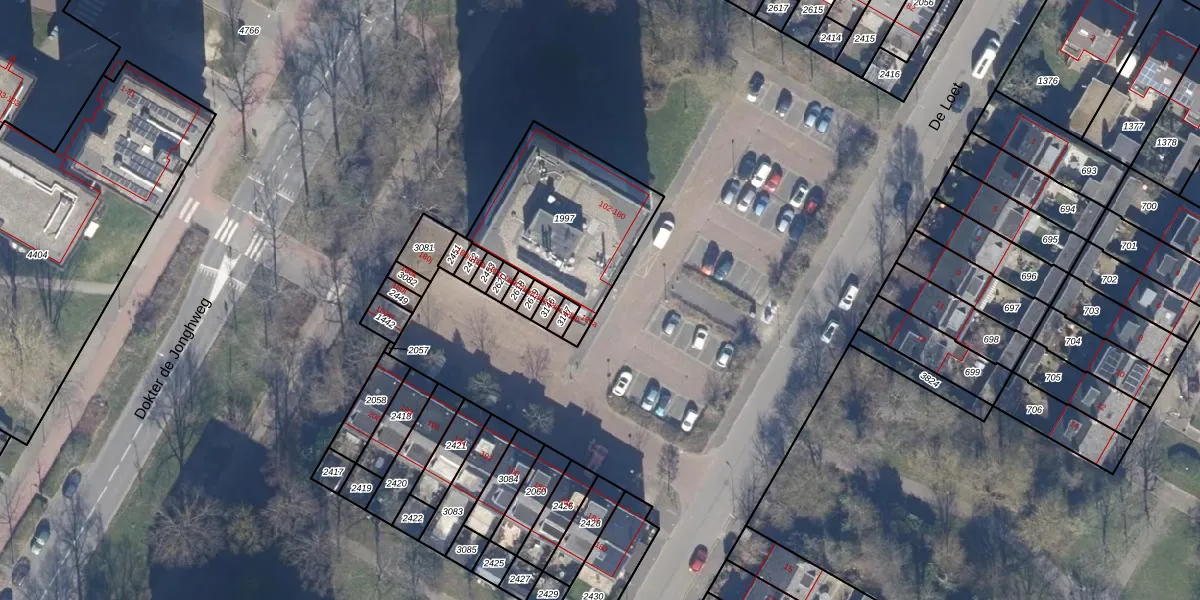 Het perceel waarop De Loet 108 staat heeft een oppervlakte van 594 m². Dit is een groot perceel. De perceeloppervlakte wordt geregistreerd door het Kadaster. Gedetailleerde informatie over de maten van dit perceel kunt u vinden in het rapport Kadastrale kaart met maatvoering van De Loet 108.