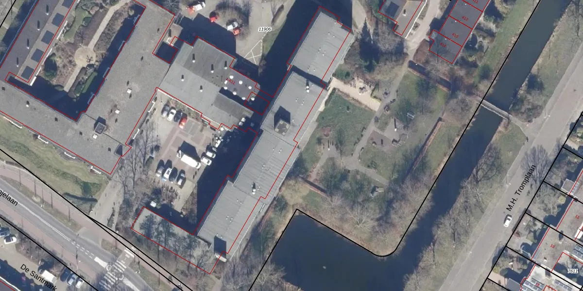 Het perceel waarop De Santmark 10 staat heeft een oppervlakte van 2,1 ha. Dit is een zeer groot perceel. De perceeloppervlakte wordt geregistreerd door het Kadaster. Gedetailleerde informatie over de maten van dit perceel kunt u vinden in het rapport Kadastrale kaart met maatvoering van De Santmark 10.