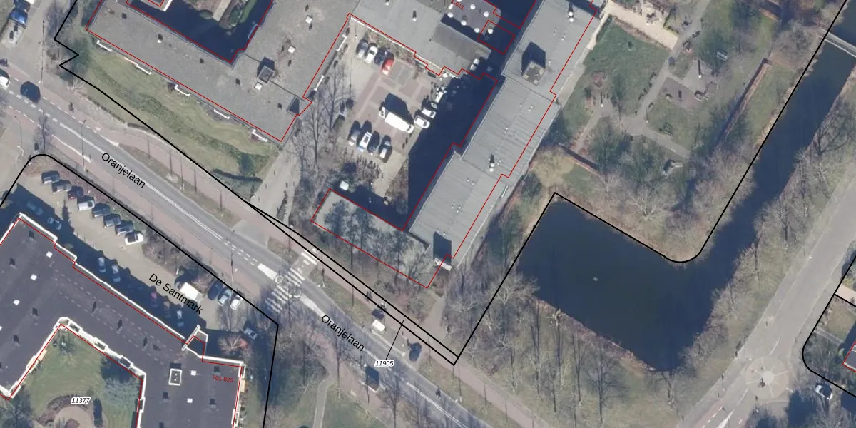 Het perceel waarop De Santmark 115 staat heeft een oppervlakte van 2,1 ha. Dit is een zeer groot perceel. De perceeloppervlakte wordt geregistreerd door het Kadaster. Gedetailleerde informatie over de maten van dit perceel kunt u vinden in het rapport Kadastrale kaart met maatvoering van De Santmark 115.