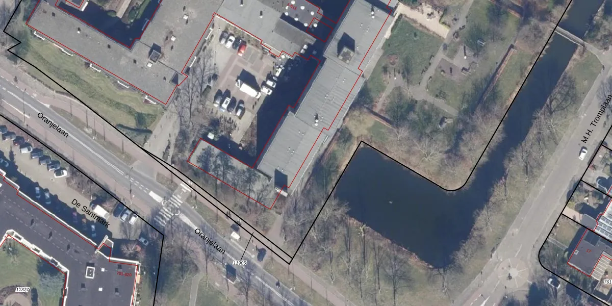 Het perceel waarop De Santmark 13 staat heeft een oppervlakte van 2,1 ha. Dit is een zeer groot perceel. De perceeloppervlakte wordt geregistreerd door het Kadaster. Gedetailleerde informatie over de maten van dit perceel kunt u vinden in het rapport Kadastrale kaart met maatvoering van De Santmark 13.