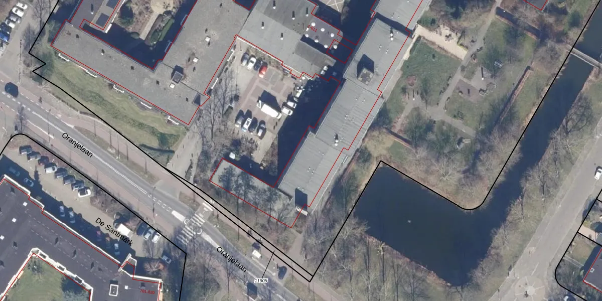 Het perceel waarop De Santmark 16 staat heeft een oppervlakte van 2,1 ha. Dit is een zeer groot perceel. De perceeloppervlakte wordt geregistreerd door het Kadaster. Gedetailleerde informatie over de maten van dit perceel kunt u vinden in het rapport Kadastrale kaart met maatvoering van De Santmark 16.