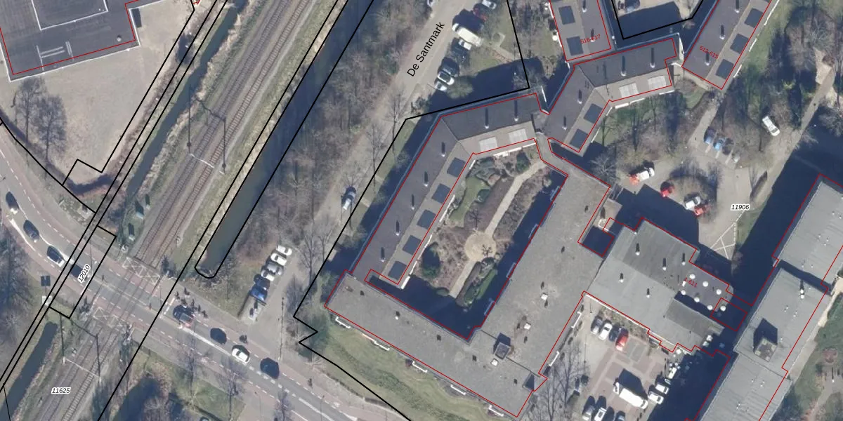 Het perceel waarop De Santmark 503 staat heeft een oppervlakte van 2,1 ha. Dit is een zeer groot perceel. De perceeloppervlakte wordt geregistreerd door het Kadaster. Gedetailleerde informatie over de maten van dit perceel kunt u vinden in het rapport Kadastrale kaart met maatvoering van De Santmark 503.