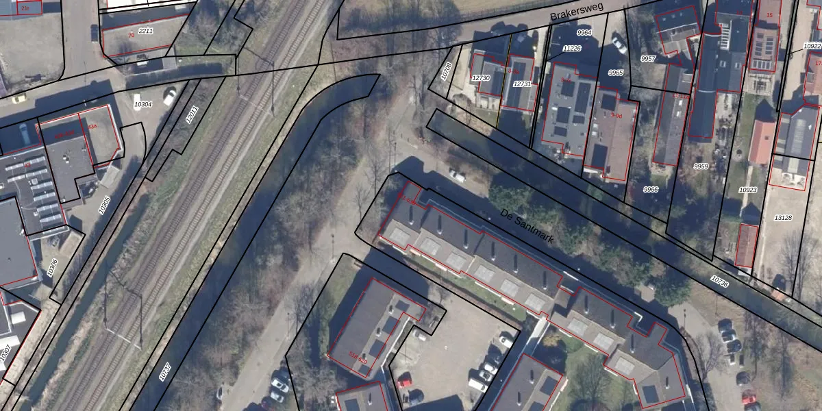 Het perceel waarop De Santmark 521 staat heeft een oppervlakte van 2,1 ha. Dit is een zeer groot perceel. De perceeloppervlakte wordt geregistreerd door het Kadaster. Gedetailleerde informatie over de maten van dit perceel kunt u vinden in het rapport Kadastrale kaart met maatvoering van De Santmark 521.