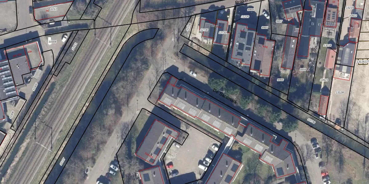 Het perceel waarop De Santmark 522 staat heeft een oppervlakte van 2,1 ha. Dit is een zeer groot perceel. De perceeloppervlakte wordt geregistreerd door het Kadaster. Gedetailleerde informatie over de maten van dit perceel kunt u vinden in het rapport Kadastrale kaart met maatvoering van De Santmark 522.