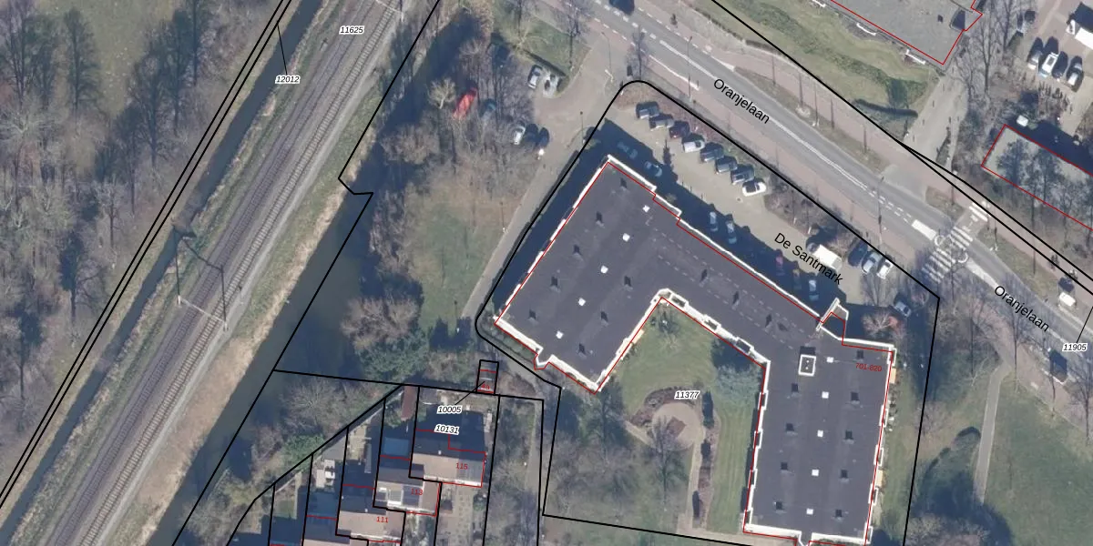 Het perceel waarop De Santmark 717 staat heeft een oppervlakte van 4920 m². Dit is een zeer groot perceel. De perceeloppervlakte wordt geregistreerd door het Kadaster. Gedetailleerde informatie over de maten van dit perceel kunt u vinden in het rapport Kadastrale kaart met maatvoering van De Santmark 717.