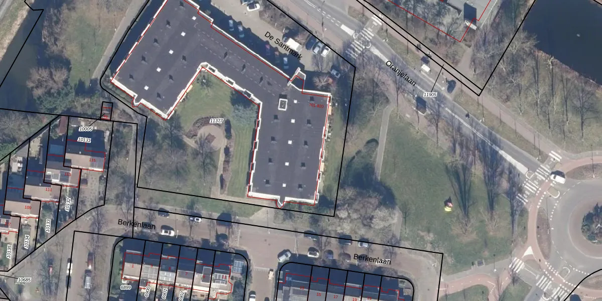 Het perceel waarop De Santmark 803 staat heeft een oppervlakte van 4920 m². Dit is een zeer groot perceel. De perceeloppervlakte wordt geregistreerd door het Kadaster. Gedetailleerde informatie over de maten van dit perceel kunt u vinden in het rapport Kadastrale kaart met maatvoering van De Santmark 803.