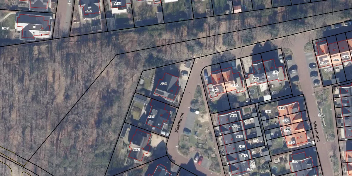 Het perceel waarop Eikenhorst 28 staat heeft een oppervlakte van 555 m². Dit is een groot perceel. De perceeloppervlakte wordt geregistreerd door het Kadaster. Gedetailleerde informatie over de maten van dit perceel kunt u vinden in het rapport Kadastrale kaart met maatvoering van Eikenhorst 28.