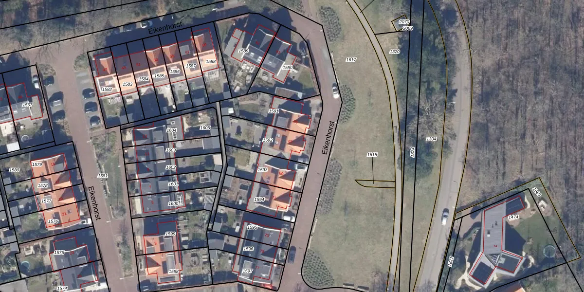 Het perceel waarop Eikenhorst 67 staat heeft een oppervlakte van 312 m². Dit is een groot perceel. De perceeloppervlakte wordt geregistreerd door het Kadaster. Gedetailleerde informatie over de maten van dit perceel kunt u vinden in het rapport Kadastrale kaart met maatvoering van Eikenhorst 67.