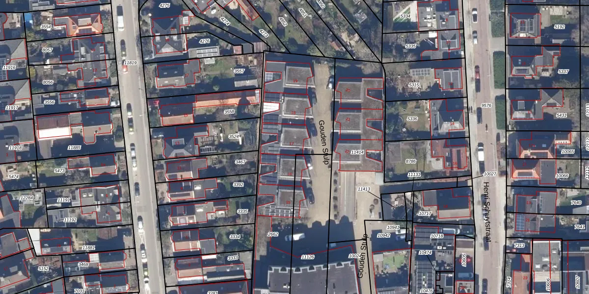 Het perceel waarop Gouden Stulp 17 staat heeft een oppervlakte van 1690 m². Dit is een zeer groot perceel. De perceeloppervlakte wordt geregistreerd door het Kadaster. Gedetailleerde informatie over de maten van dit perceel kunt u vinden in het rapport Kadastrale kaart met maatvoering van Gouden Stulp 17.