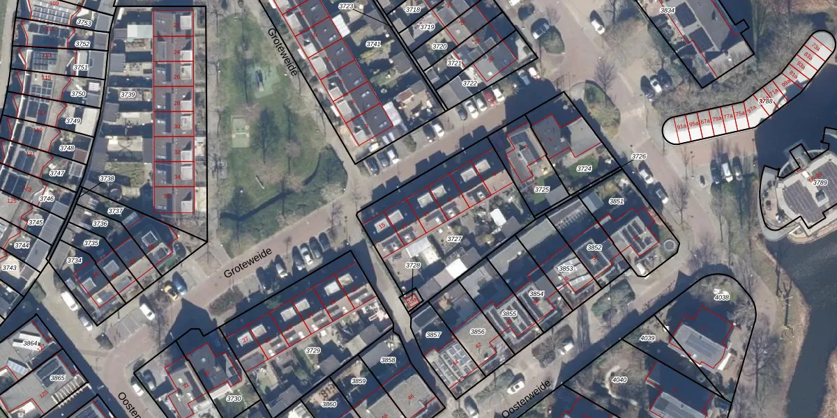 Het perceel waarop Groteweide 11 staat heeft een oppervlakte van 896 m². Dit is een groot perceel. De perceeloppervlakte wordt geregistreerd door het Kadaster. Gedetailleerde informatie over de maten van dit perceel kunt u vinden in het rapport Kadastrale kaart met maatvoering van Groteweide 11.