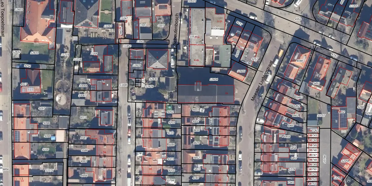 Het perceel waarop Meester Ludwigstraat 2-c staat heeft een oppervlakte van 622 m². Dit is een groot perceel. De perceeloppervlakte wordt geregistreerd door het Kadaster. Gedetailleerde informatie over de maten van dit perceel kunt u vinden in het rapport Kadastrale kaart met maatvoering van Meester Ludwigstraat 2-c.
