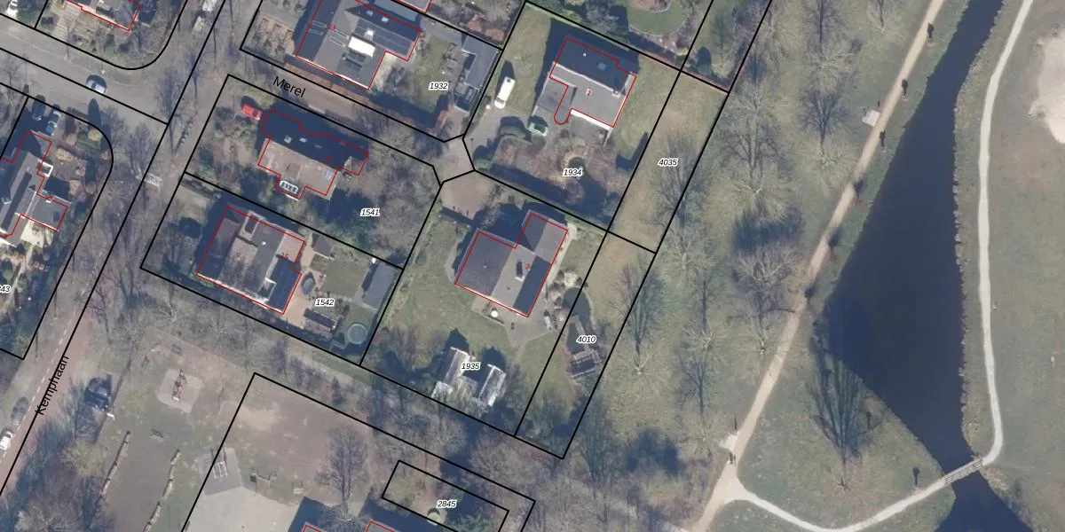 Het perceel waarop Merel 3 staat heeft een oppervlakte van 1351 m². Dit is een zeer groot perceel. De perceeloppervlakte wordt geregistreerd door het Kadaster. Gedetailleerde informatie over de maten van dit perceel kunt u vinden in het rapport Kadastrale kaart met maatvoering van Merel 3.