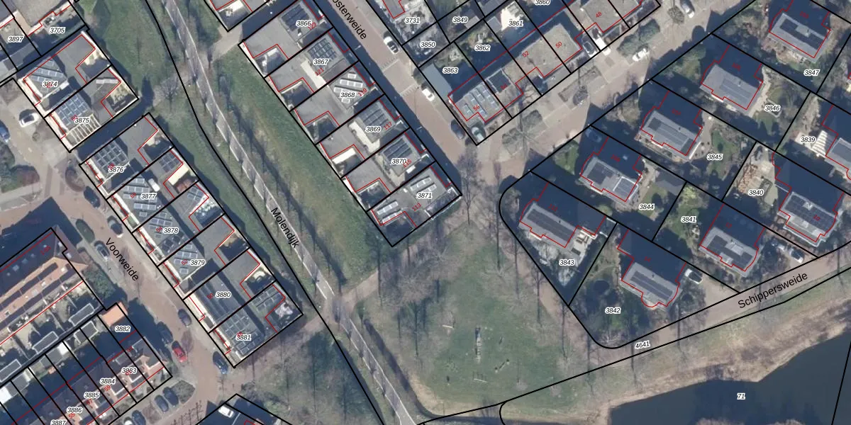 Gebruik de zoekbalk of klik op een perceel voor informatie over de adressen binnen dit perceel.