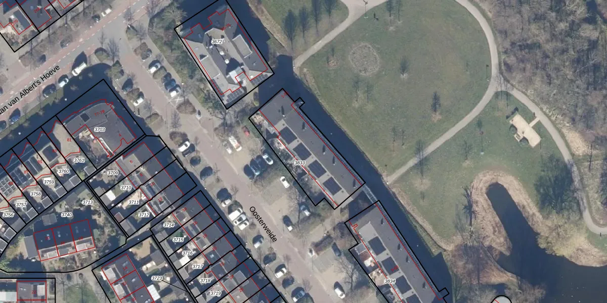 Het perceel waarop Oosterweide 23 staat heeft een oppervlakte van 660 m². Dit is een groot perceel. De perceeloppervlakte wordt geregistreerd door het Kadaster. Gedetailleerde informatie over de maten van dit perceel kunt u vinden in het rapport Kadastrale kaart met maatvoering van Oosterweide 23.