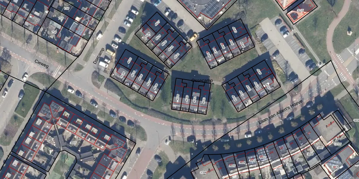 Het perceel waarop Ossecamp 7 staat heeft een oppervlakte van 87 m². Dit is een klein perceel. De perceeloppervlakte wordt geregistreerd door het Kadaster. Gedetailleerde informatie over de maten van dit perceel kunt u vinden in het rapport Kadastrale kaart met maatvoering van Ossecamp 7.