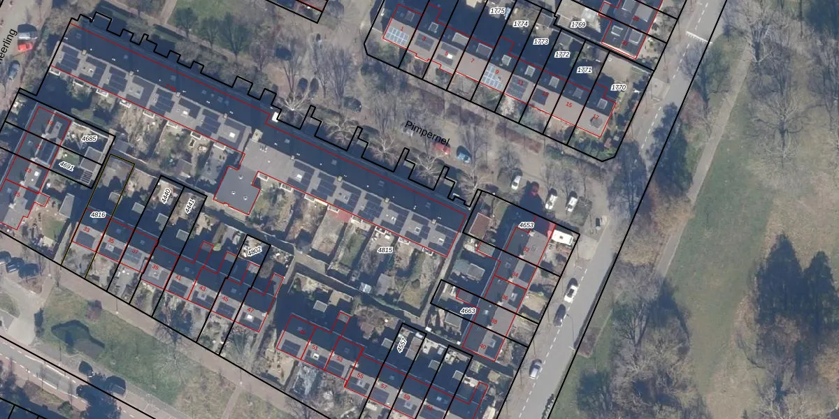 Het perceel waarop Pimpernel 30 staat heeft een oppervlakte van 6137 m². Dit is een zeer groot perceel. De perceeloppervlakte wordt geregistreerd door het Kadaster. Gedetailleerde informatie over de maten van dit perceel kunt u vinden in het rapport Kadastrale kaart met maatvoering van Pimpernel 30.