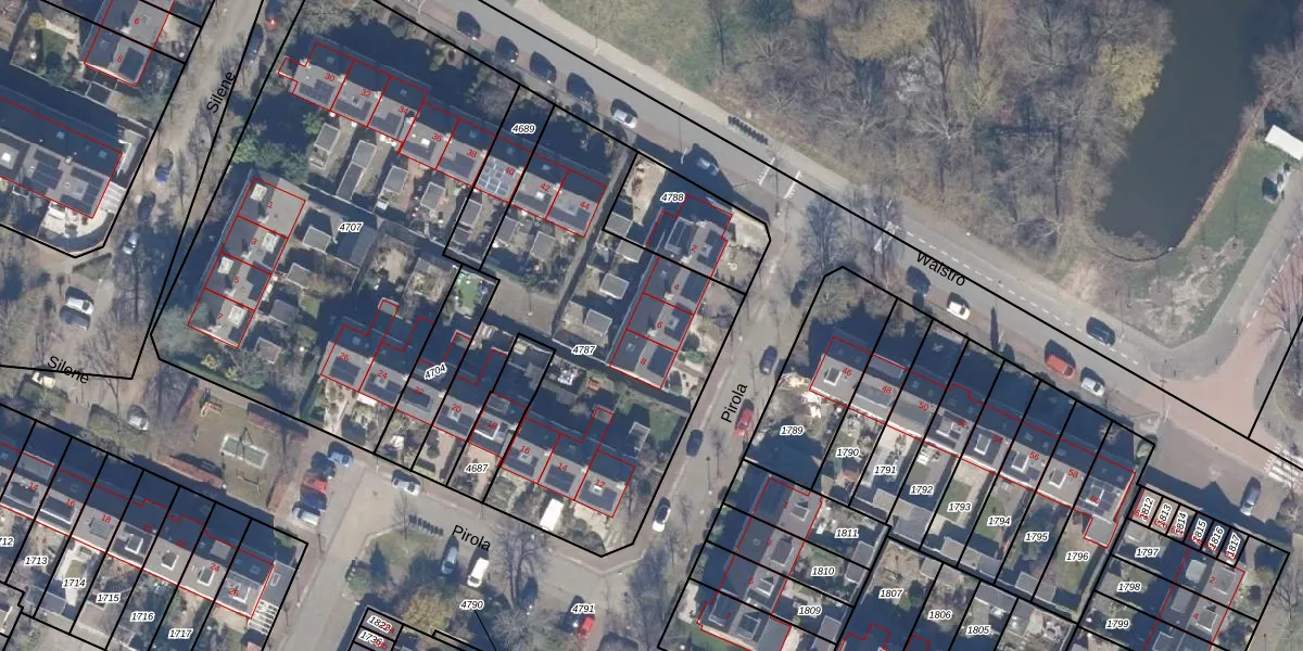 Het perceel waarop Pirola 6 staat heeft een oppervlakte van 1706 m². Dit is een zeer groot perceel. De perceeloppervlakte wordt geregistreerd door het Kadaster. Gedetailleerde informatie over de maten van dit perceel kunt u vinden in het rapport Kadastrale kaart met maatvoering van Pirola 6.