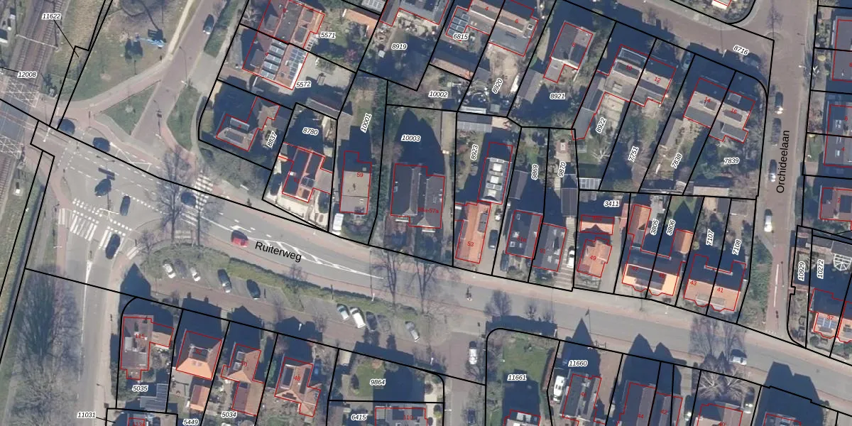 Het perceel waarop Ruiterweg 55-h staat heeft een oppervlakte van 630 m². Dit is een groot perceel. De perceeloppervlakte wordt geregistreerd door het Kadaster. Gedetailleerde informatie over de maten van dit perceel kunt u vinden in het rapport Kadastrale kaart met maatvoering van Ruiterweg 55-h.
