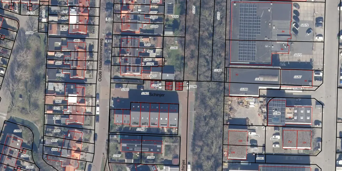 Het perceel waarop Schinjer 9-a staat heeft een oppervlakte van 20 m². Dit is een klein perceel. De perceeloppervlakte wordt geregistreerd door het Kadaster. Gedetailleerde informatie over de maten van dit perceel kunt u vinden in het rapport Kadastrale kaart met maatvoering van Schinjer 9-a.