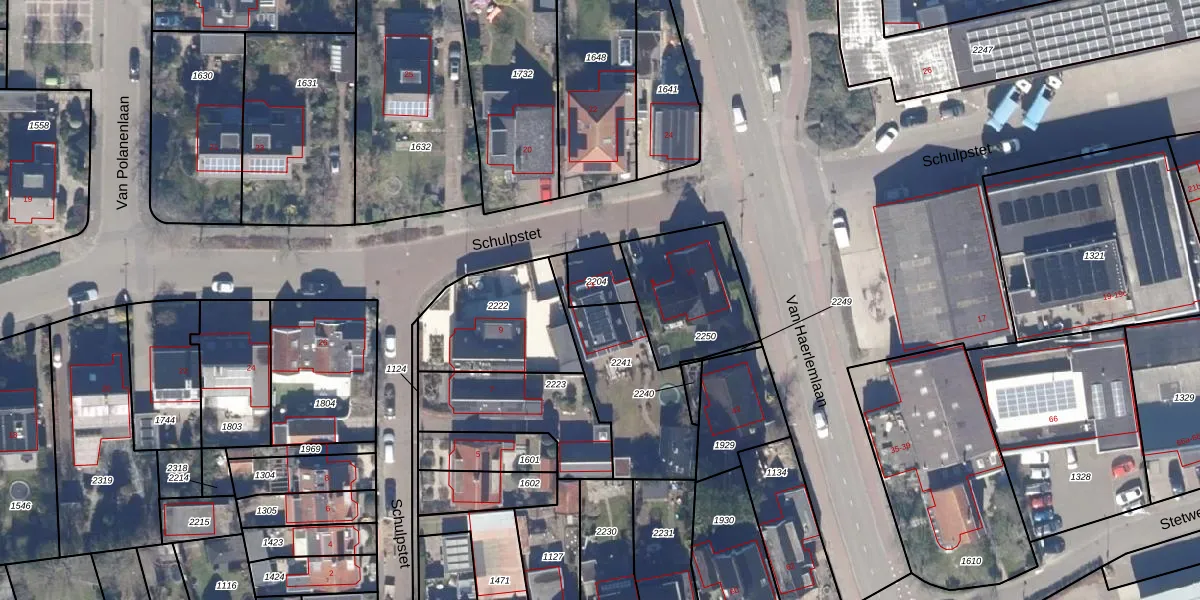 Gebruik de zoekbalk of klik op een perceel voor informatie over de adressen binnen dit perceel.