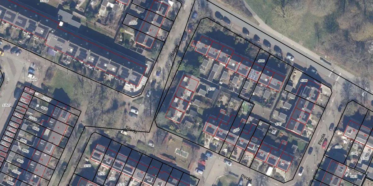 Het perceel waarop Silene 3 staat heeft een oppervlakte van 2341 m². Dit is een zeer groot perceel. De perceeloppervlakte wordt geregistreerd door het Kadaster. Gedetailleerde informatie over de maten van dit perceel kunt u vinden in het rapport Kadastrale kaart met maatvoering van Silene 3.