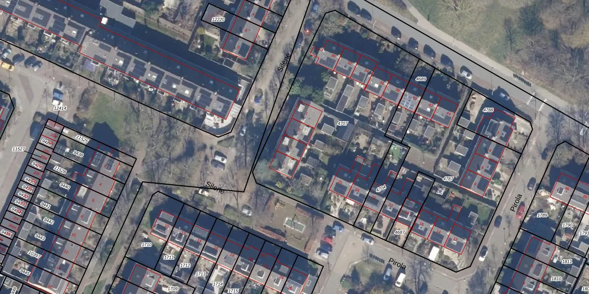 Het perceel waarop Silene 5 staat heeft een oppervlakte van 2341 m². Dit is een zeer groot perceel. De perceeloppervlakte wordt geregistreerd door het Kadaster. Gedetailleerde informatie over de maten van dit perceel kunt u vinden in het rapport Kadastrale kaart met maatvoering van Silene 5.