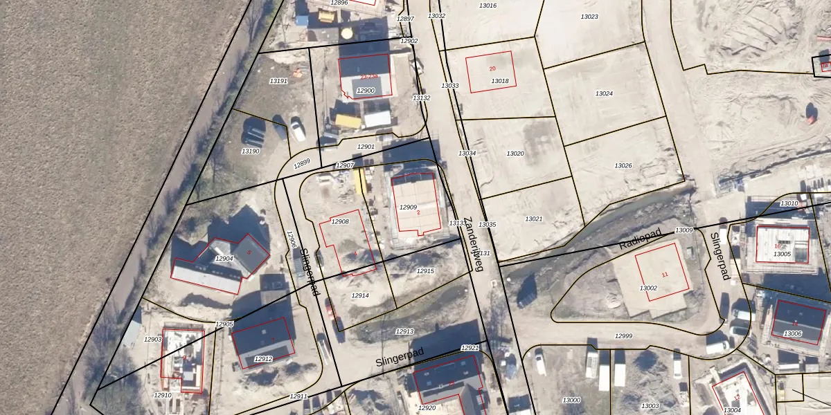 Gebruik de zoekbalk of klik op een perceel voor informatie over de adressen binnen dit perceel.