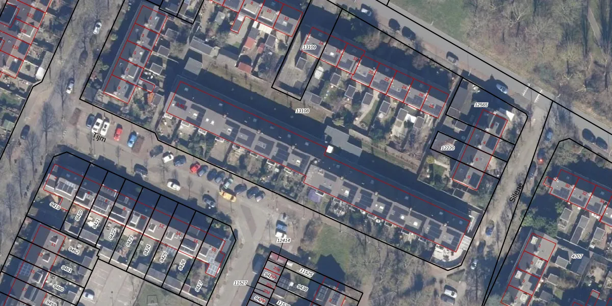 Het perceel waarop Tijm 45 staat heeft een oppervlakte van 7069 m². Dit is een zeer groot perceel. De perceeloppervlakte wordt geregistreerd door het Kadaster. Gedetailleerde informatie over de maten van dit perceel kunt u vinden in het rapport Kadastrale kaart met maatvoering van Tijm 45.