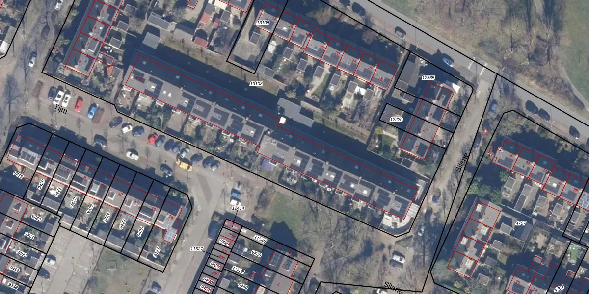 Het perceel waarop Tijm 49 staat heeft een oppervlakte van 7069 m². Dit is een zeer groot perceel. De perceeloppervlakte wordt geregistreerd door het Kadaster. Gedetailleerde informatie over de maten van dit perceel kunt u vinden in het rapport Kadastrale kaart met maatvoering van Tijm 49.