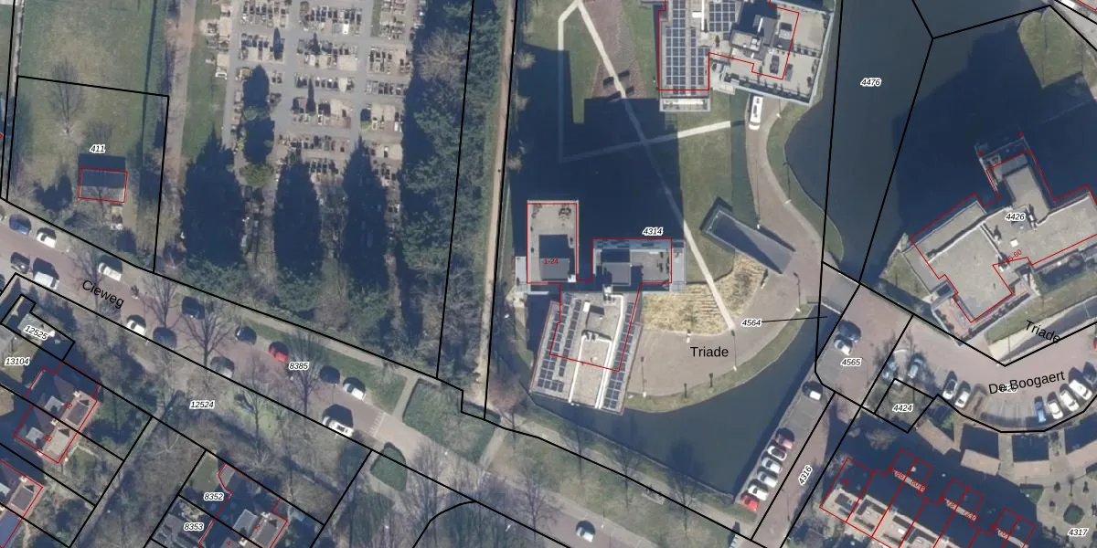 Het perceel waarop Triade 1 staat heeft een oppervlakte van 6925 m². Dit is een zeer groot perceel. De perceeloppervlakte wordt geregistreerd door het Kadaster. Gedetailleerde informatie over de maten van dit perceel kunt u vinden in het rapport Kadastrale kaart met maatvoering van Triade 1.