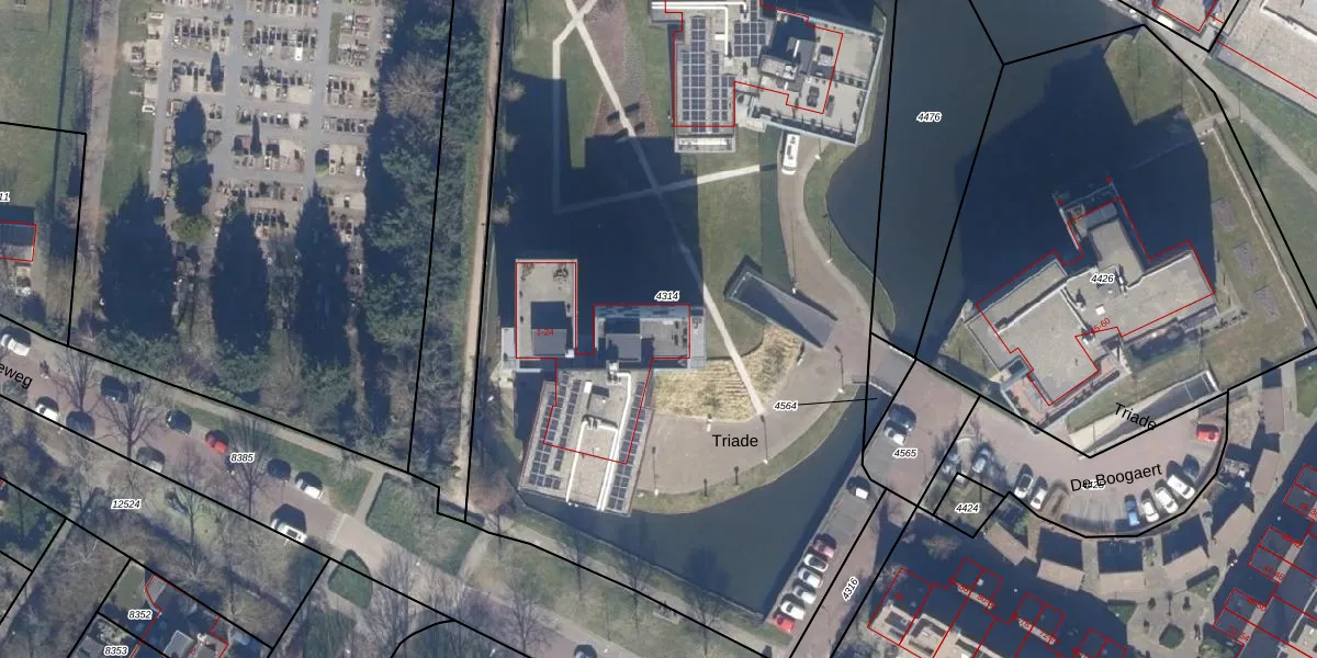Het perceel waarop Triade 17 staat heeft een oppervlakte van 6925 m². Dit is een zeer groot perceel. De perceeloppervlakte wordt geregistreerd door het Kadaster. Gedetailleerde informatie over de maten van dit perceel kunt u vinden in het rapport Kadastrale kaart met maatvoering van Triade 17.