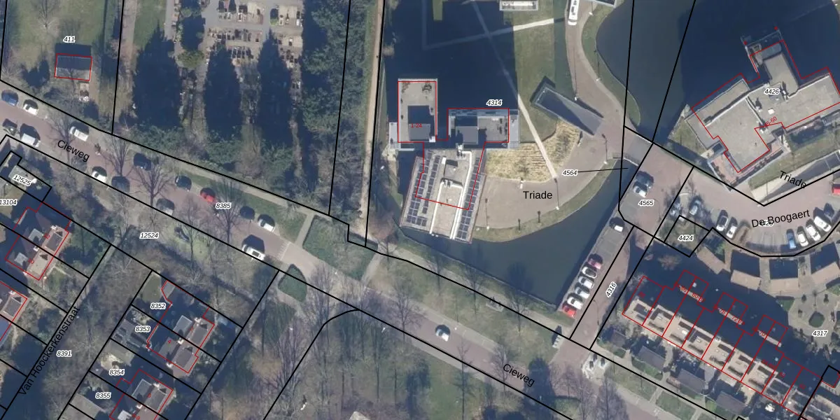 Het perceel waarop Triade 23 staat heeft een oppervlakte van 6925 m². Dit is een zeer groot perceel. De perceeloppervlakte wordt geregistreerd door het Kadaster. Gedetailleerde informatie over de maten van dit perceel kunt u vinden in het rapport Kadastrale kaart met maatvoering van Triade 23.