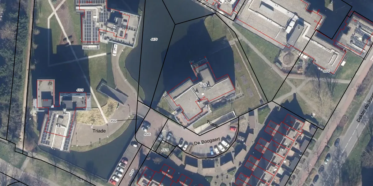 Triade 53 is gelegen op kadastraal perceel CTC00C4426. Deze kadastrale aanduiding is uniek en wordt gebruikt door het Kadaster om eigendomsrechten en andere zakelijke rechten vast te leggen. Het perceel maakt onderdeel uit van de kadastrale gemeente Castricum.