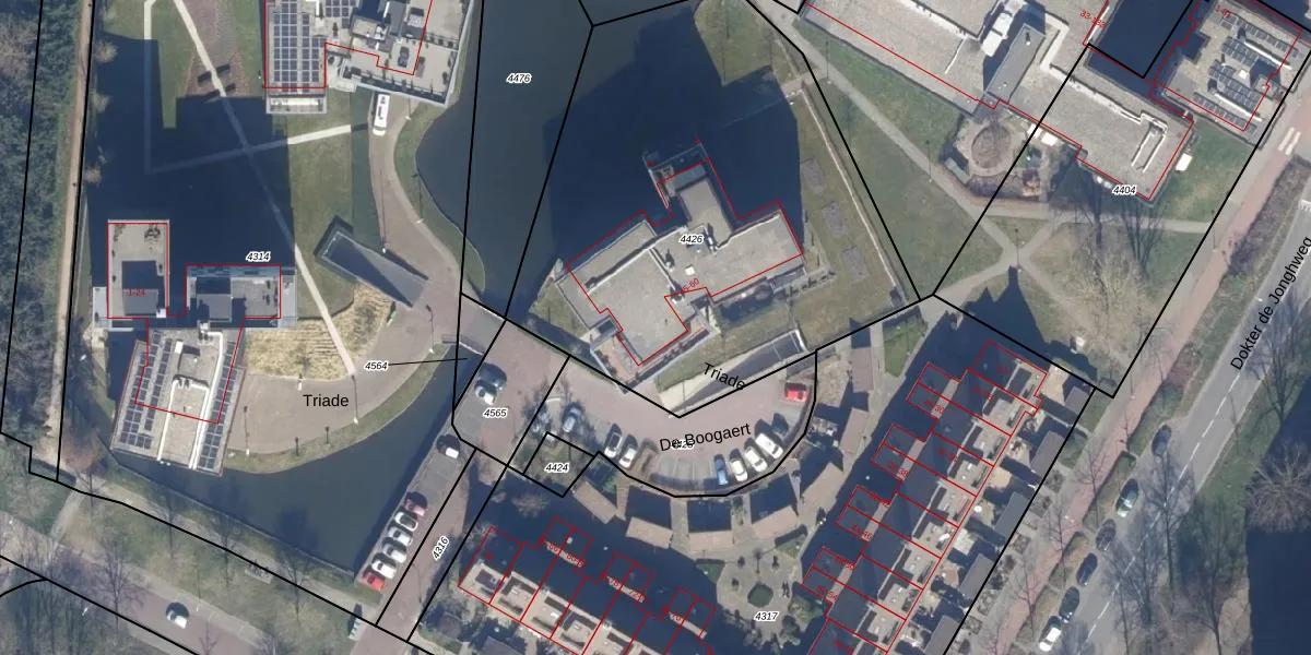 Het perceel waarop Triade 56 staat heeft een oppervlakte van 2635 m². Dit is een zeer groot perceel. De perceeloppervlakte wordt geregistreerd door het Kadaster. Gedetailleerde informatie over de maten van dit perceel kunt u vinden in het rapport Kadastrale kaart met maatvoering van Triade 56.