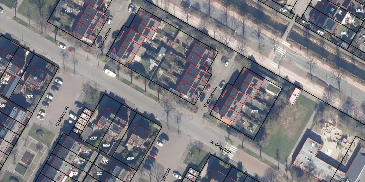 Het perceel waarop Walingstuin 25 staat heeft een oppervlakte van 1678 m². Dit is een zeer groot perceel. De perceeloppervlakte wordt geregistreerd door het Kadaster. Gedetailleerde informatie over de maten van dit perceel kunt u vinden in het rapport Kadastrale kaart met maatvoering van Walingstuin 25.