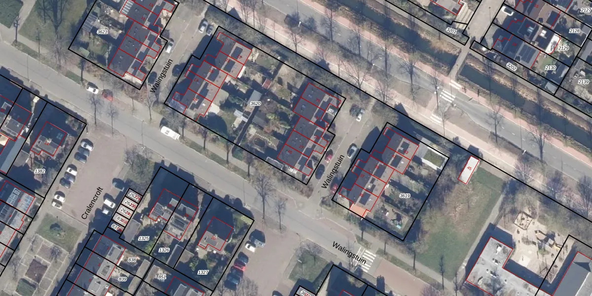 Het perceel waarop Walingstuin 27 staat heeft een oppervlakte van 1678 m². Dit is een zeer groot perceel. De perceeloppervlakte wordt geregistreerd door het Kadaster. Gedetailleerde informatie over de maten van dit perceel kunt u vinden in het rapport Kadastrale kaart met maatvoering van Walingstuin 27.