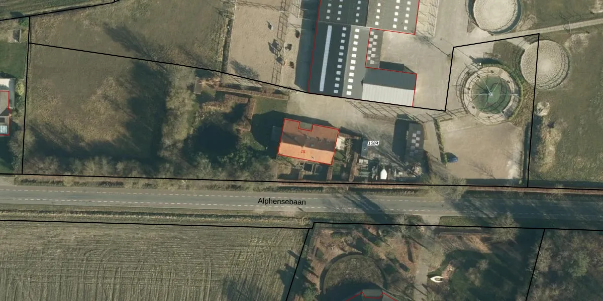 Alphensebaan 15 is gelegen op kadastraal perceel CHA00K1084. Deze kadastrale aanduiding is uniek en wordt gebruikt door het Kadaster om eigendomsrechten en andere zakelijke rechten vast te leggen. Het perceel maakt onderdeel uit van de kadastrale gemeente Chaam.