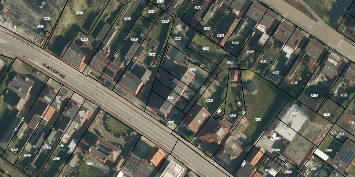 Het perceel waarop Baarleseweg 13 staat heeft een oppervlakte van 505 m². Dit is een groot perceel. De perceeloppervlakte wordt geregistreerd door het Kadaster. Gedetailleerde informatie over de maten van dit perceel kunt u vinden in het rapport Kadastrale kaart met maatvoering van Baarleseweg 13.