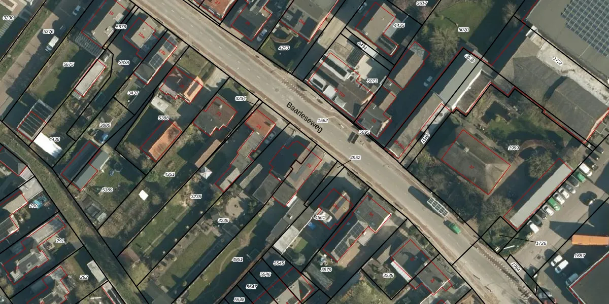 Het perceel waarop Baarleseweg 26 staat heeft een oppervlakte van 910 m². Dit is een groot perceel. De perceeloppervlakte wordt geregistreerd door het Kadaster. Gedetailleerde informatie over de maten van dit perceel kunt u vinden in het rapport Kadastrale kaart met maatvoering van Baarleseweg 26.