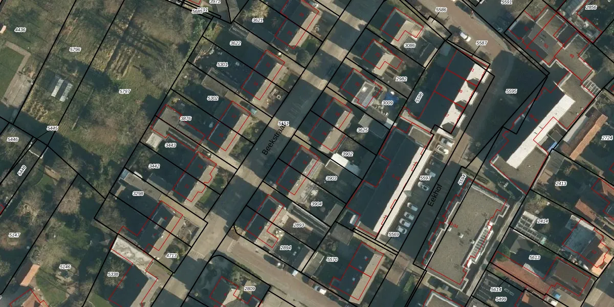 Gebruik de zoekbalk of klik op een perceel voor informatie over de adressen binnen dit perceel.