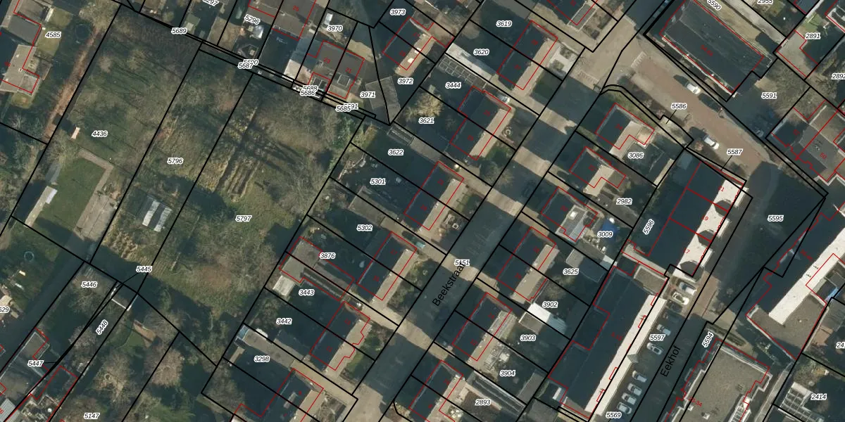 Beekstraat 19 is gelegen op kadastraal perceel CHA00E5301. Deze kadastrale aanduiding is uniek en wordt gebruikt door het Kadaster om eigendomsrechten en andere zakelijke rechten vast te leggen. Het perceel maakt onderdeel uit van de kadastrale gemeente Chaam.