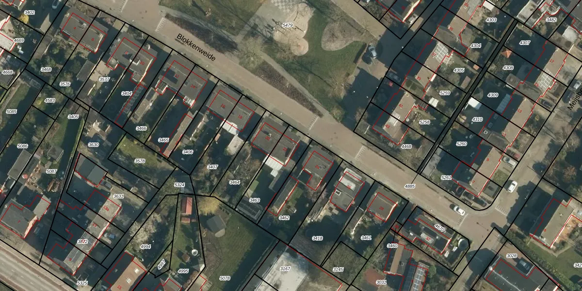 Het perceel waarop Blokkenweide 22 staat heeft een oppervlakte van 333 m². Dit is een groot perceel. De perceeloppervlakte wordt geregistreerd door het Kadaster. Gedetailleerde informatie over de maten van dit perceel kunt u vinden in het rapport Kadastrale kaart met maatvoering van Blokkenweide 22.