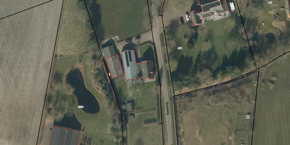 Het perceel waarop Bosweg 1 staat heeft een oppervlakte van 2,7 ha. Dit is een zeer groot perceel. De perceeloppervlakte wordt geregistreerd door het Kadaster. Gedetailleerde informatie over de maten van dit perceel kunt u vinden in het rapport Kadastrale kaart met maatvoering van Bosweg 1.